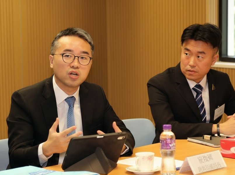 2025年10月21日,教育局副局長施俊輝博士親臨本校,深入了解本校在推行數字教育方面的最新進展與實踐經驗。池少翀校長,老師及同學們向施副局長分享了本校如何利用人工智能技術融入不同學科的日常教學中,以提升學生的學習興趣及成效,同時促進學生有效及符合道德使用資訊,使他們成為負責任的公民及終身學習者。